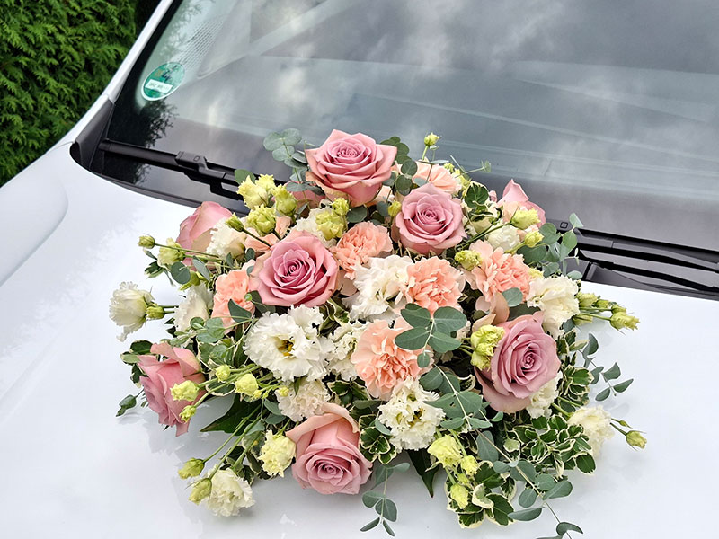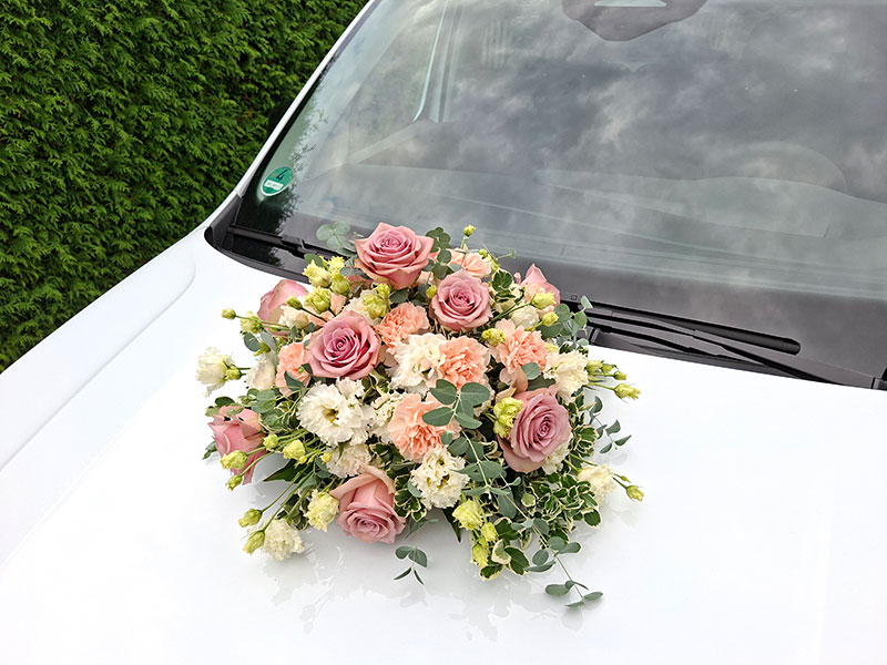 Erst ein schöner Blumenschmuck macht aus Ihrem Fahrzeug ein richtiges Hochzeitsauto.