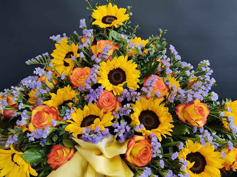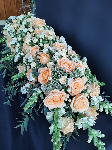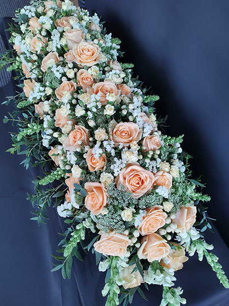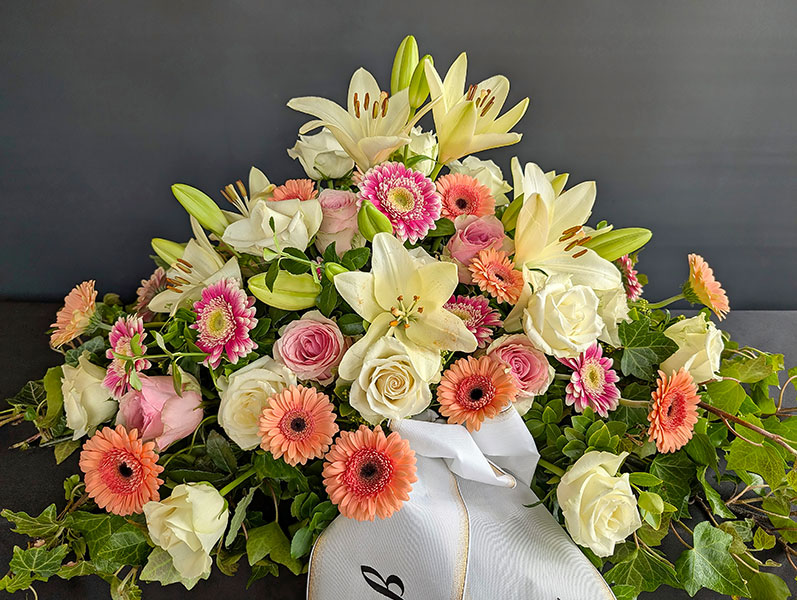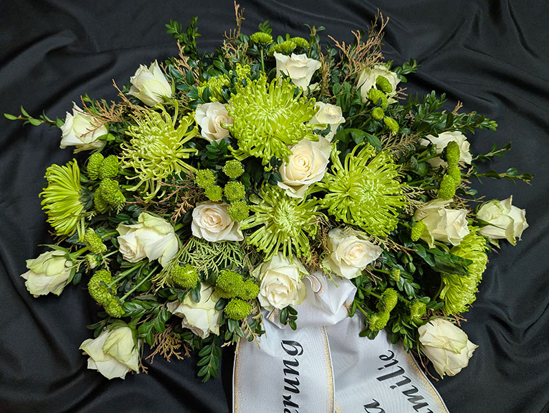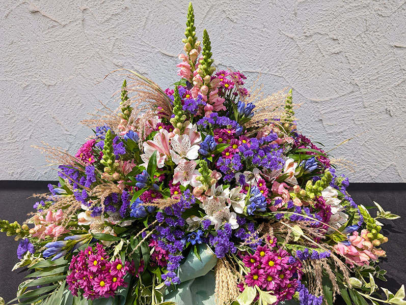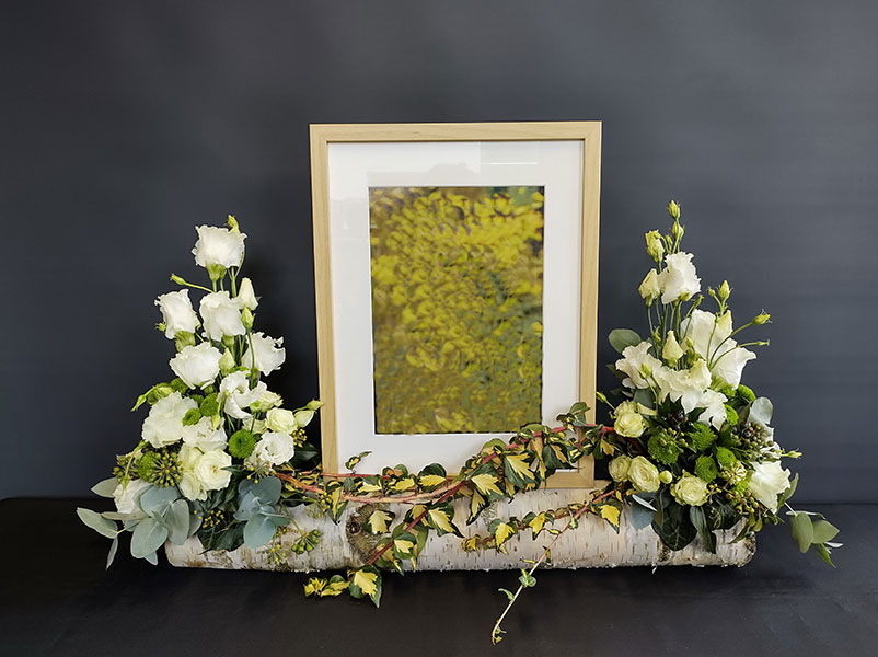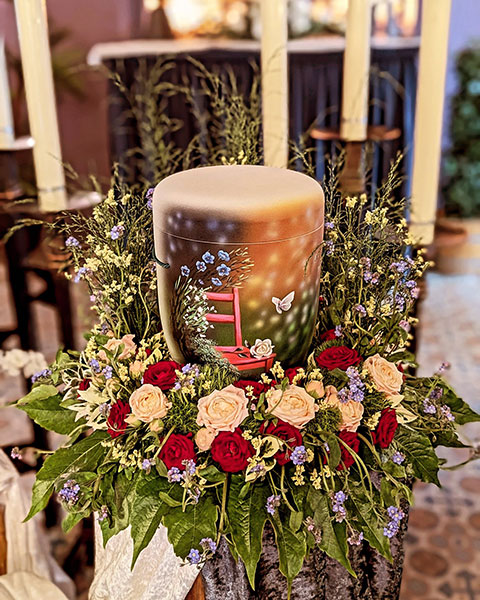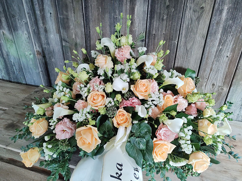 Blumenarrangement zur jeweiligen Trauerfeier an.
